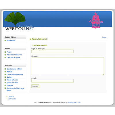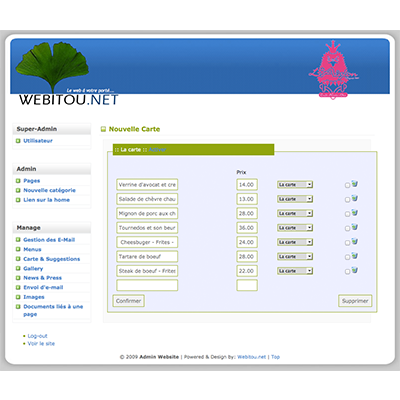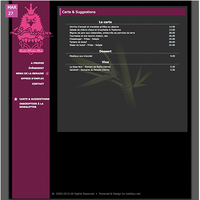 Création d'un site pour un restaurant. Gestion des flyer et Newsletter. Envoi du menu du jour au membre.